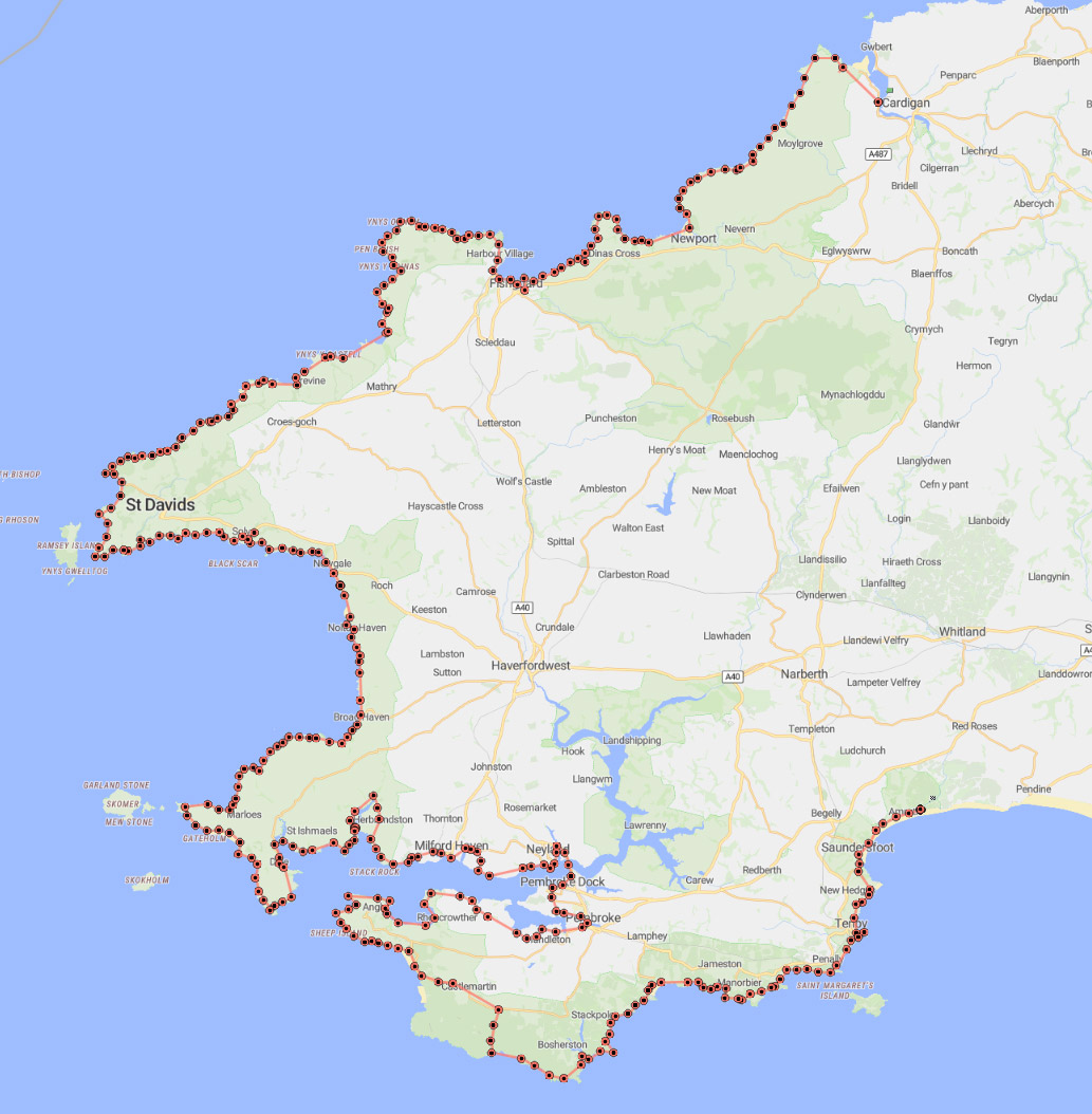 | Goodwick to Abermawr | 14 miles | Start point |