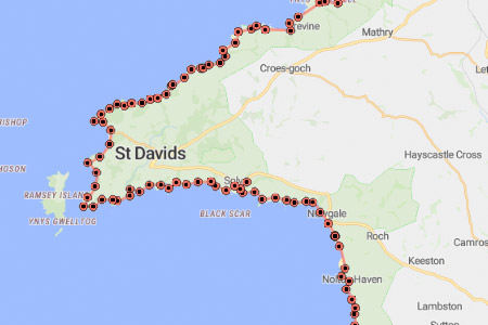 | Porthgain to Whitesands | 10 miles | Start point |
